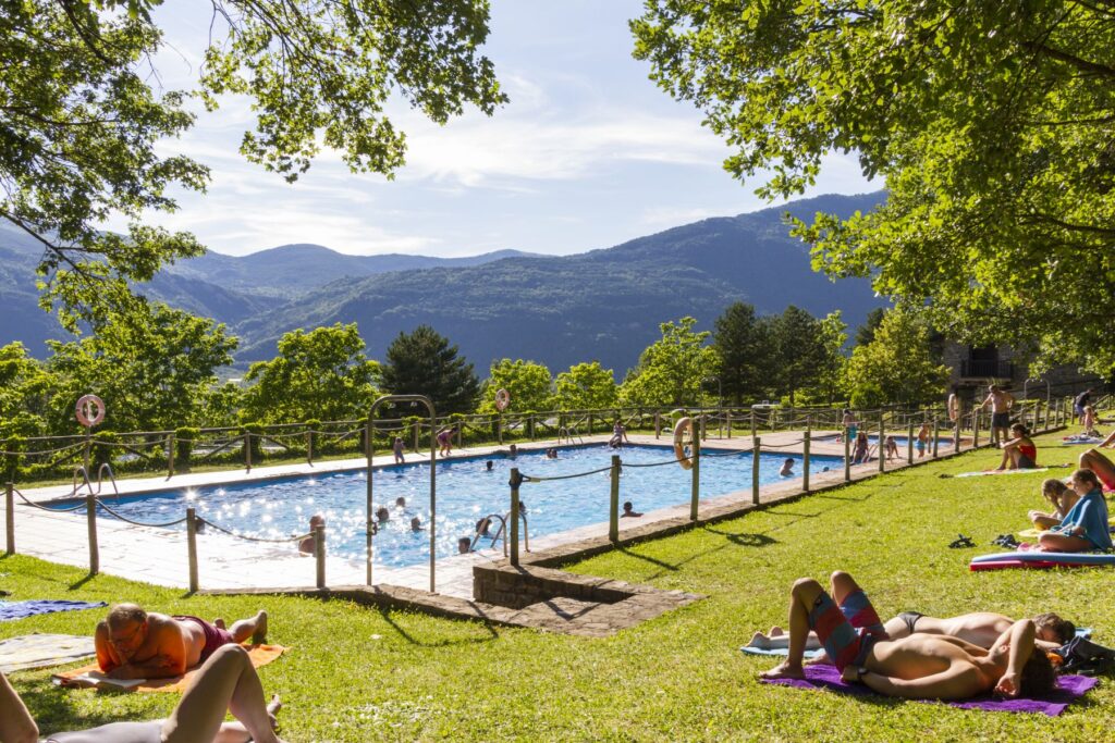 El área de piscinas al aire libre es el lugar perfecto para refrescarte tras una ruta de montaña o un paseo por la orilla del río. Los más pequeños disfrutarán del parque infantil y las zonas de juego, mientras los mayores pueden retarse en la pista polideportiva o en las mesas de ping‑pong y parchís, todo ello rodeado de un entorno espectacular.